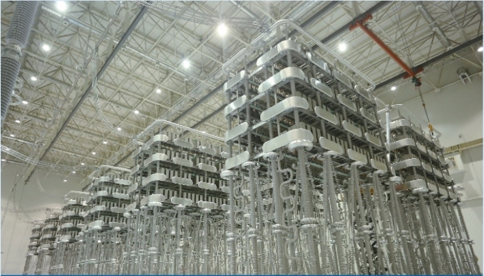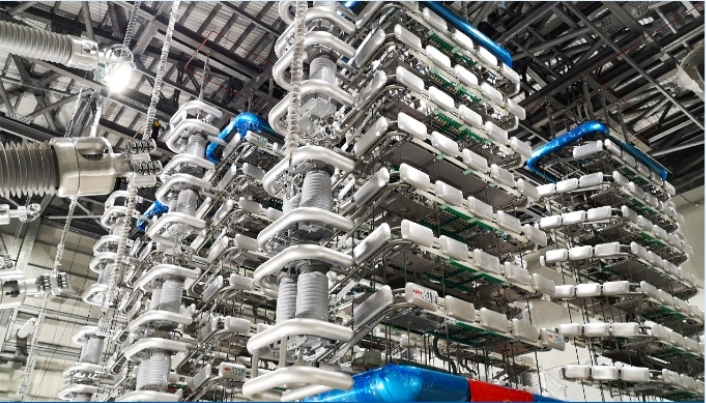 常規(guī)直流輸電換流閥以大功率晶閘管為核心器件,采用空氣絕緣、去離子水冷卻和戶內(nèi)懸吊式結(jié)構(gòu),適用于±1100kV及以下不同電壓等級(jí)的換流站,已供貨并應(yīng)用于白鶴灘-江蘇、白鶴灘-浙江和巴基斯坦默拉直流等30余個(gè)換流站。