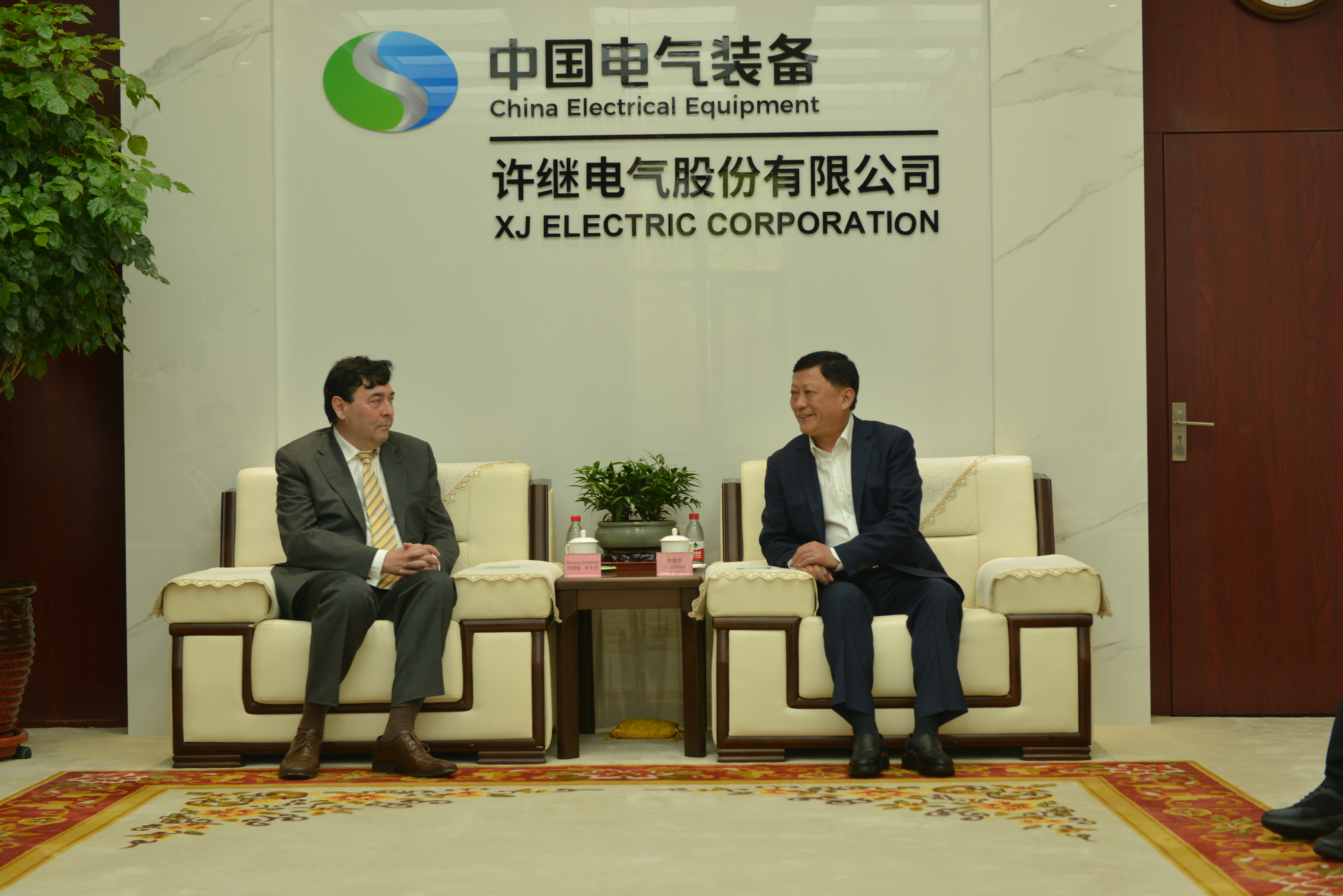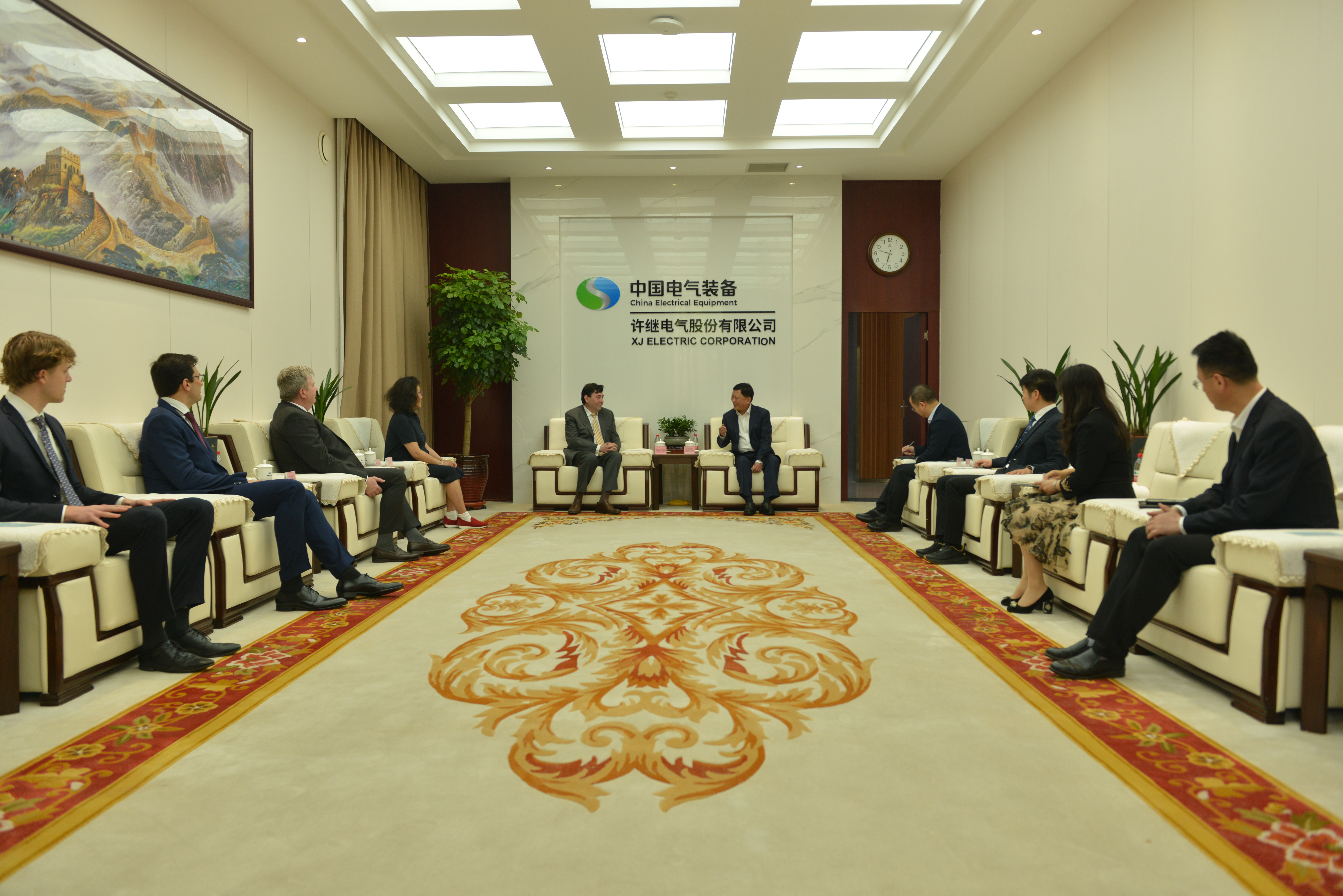 Recently, Li Juntao, Chairman of XJ Electric Corporation, met with Alonso Antonio, Chairman of Sana Green Power and Detlef Kling, Chairman of VIGOR Solar GmbH. The two sides engaged in in-depth discussion on exporting technology and new energy secstor cooperation. Li Juntao noted that XJ aims to give full play to its advantages in the field of new energy equipment manufacturing and deeply integrate with the European market and the resource advantages of Sana Green Power and VIGOR Solar GmbH. He expressed hope for carrying out long-term strategic cooperation in the field of new energy power stations, jointly creating benchmark projects in the new energy industry and making contributions to the global carbon neutrality goal. Zhao Yi, Deputy General Manager of XJ Electric Corporation, also participated in the meeting.